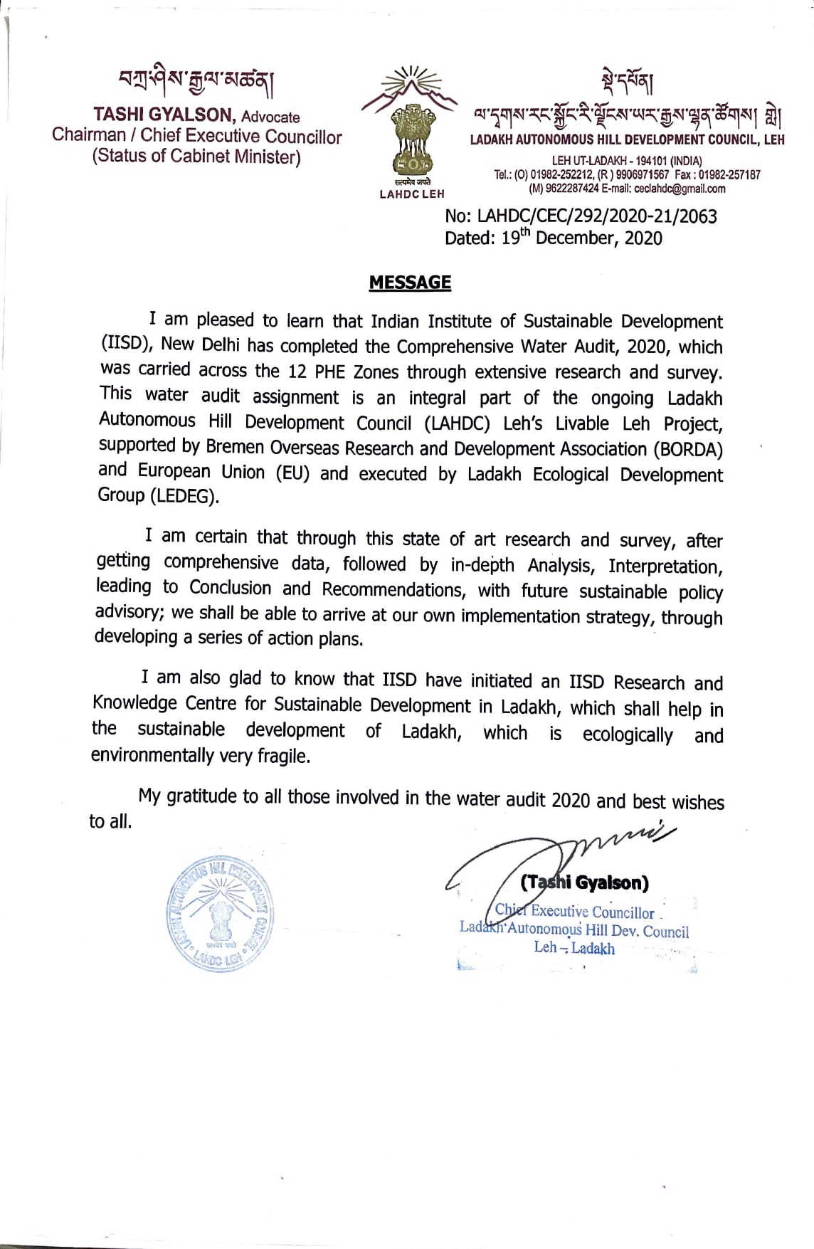 Indian Institute of Sustainable Development (IISD) is registered as a National Not-for-Profit, Independent Public Policy Think Tank and Scientific Research Institute at New Delhi, with an objective of working for ensuring overall improvement for lives and living of Common Man, through research innovation and engaging with Communities at grass-root level. IISD strives to put India into a Sustainable Path that is Inclusive and Equitable, involving people, Planet and Business.