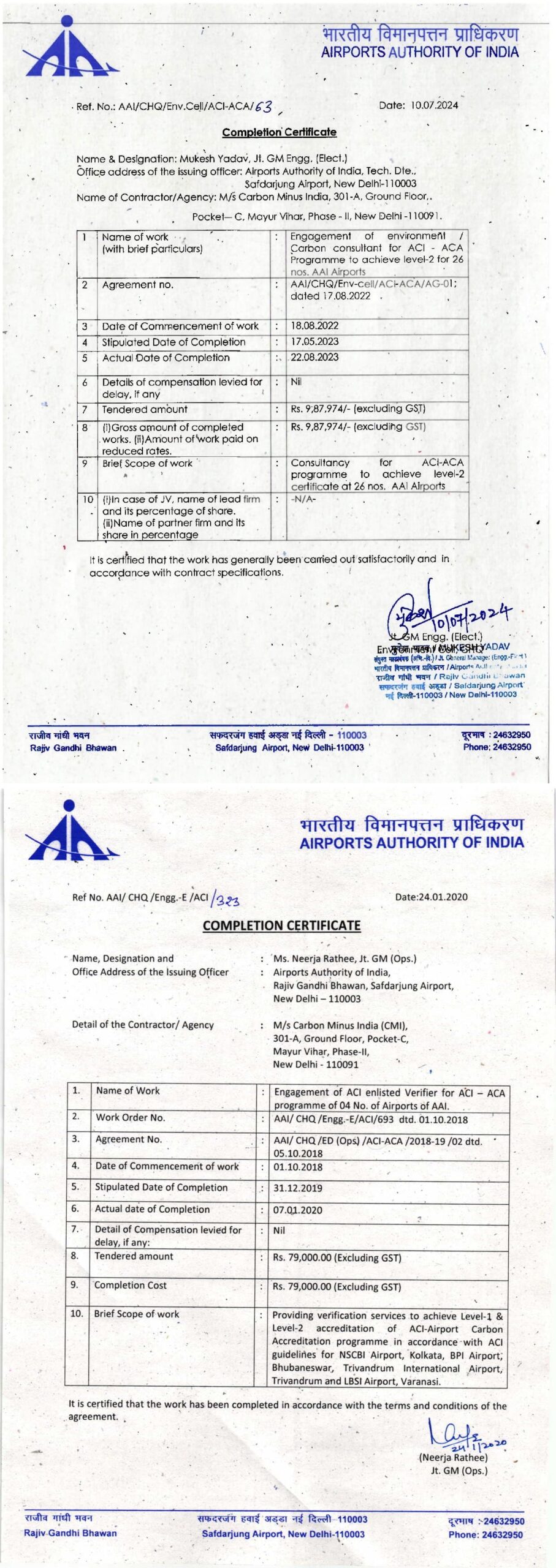 Empanelment’s in Central/State Govt Ministries, Research Labs, UN Organizations