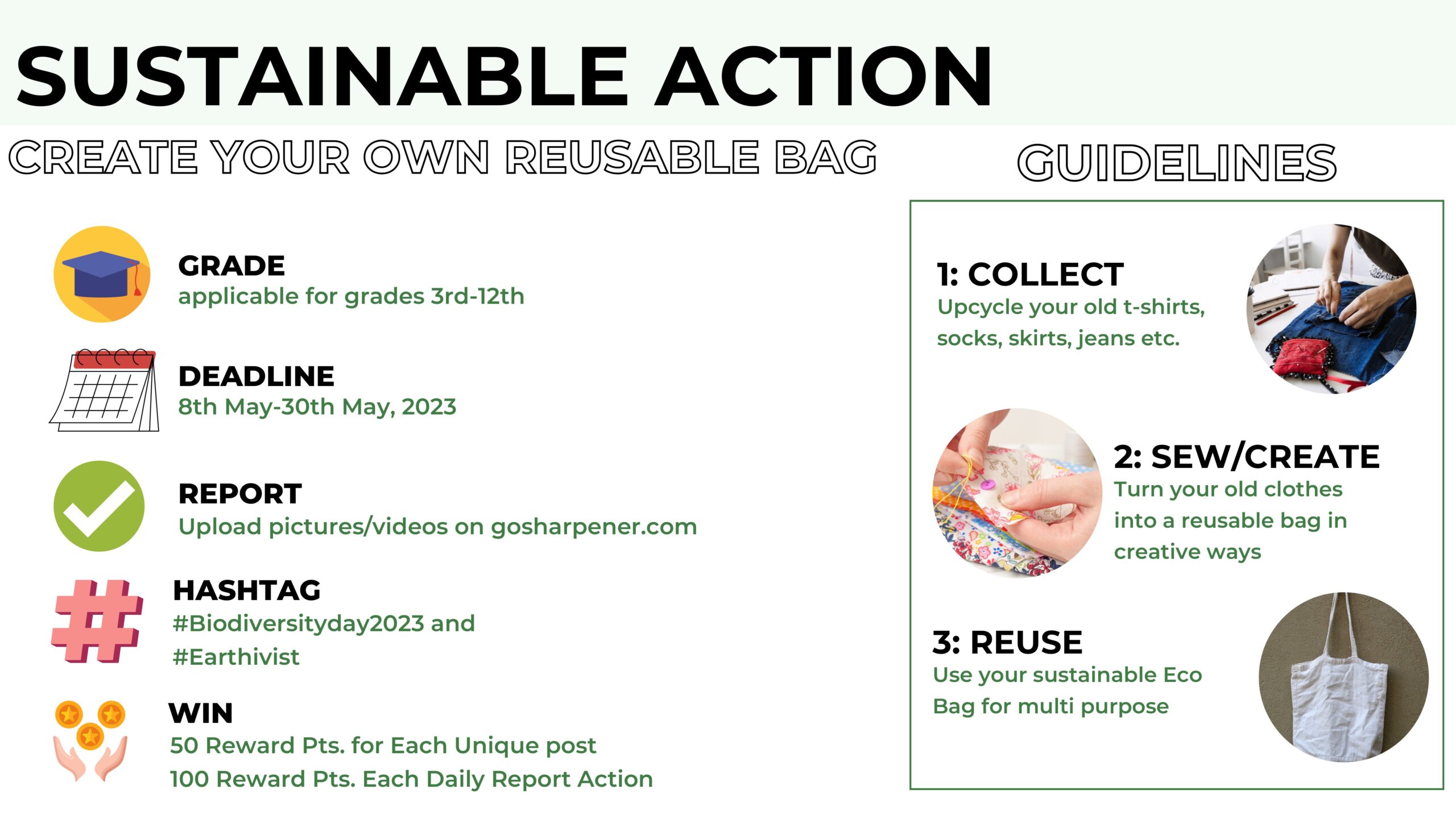 Indian Institute Of Sustainable Development (IISD) celebrated “International Biodiversity Day” in association with Go Sharpener on 8th May 2023 for classes 3rd to 12th, in which they were given two activities:-